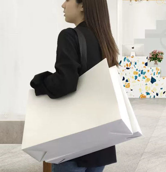 Present your brand in style with our high-end custom paper shopping bags, specially designed for clothing stores and boutiques. Made from extra-thick white kraft paper, these bags offer durability, elegance, and a luxurious feel. Custom options include foil stamping (gold/silver), logo printing, rope handles, and various finishes to elevate your brand image.